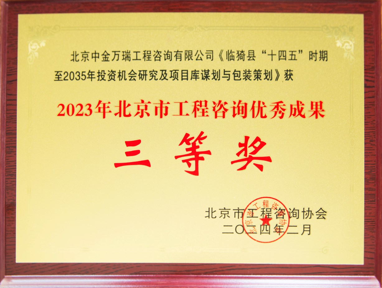 2023年北京市工程咨詢優(yōu)秀成果三等獎(jiǎng)(臨猗縣“十四五”時(shí)期至2035年投資機(jī)會(huì)研究及項(xiàng)目庫謀劃與包裝策劃)