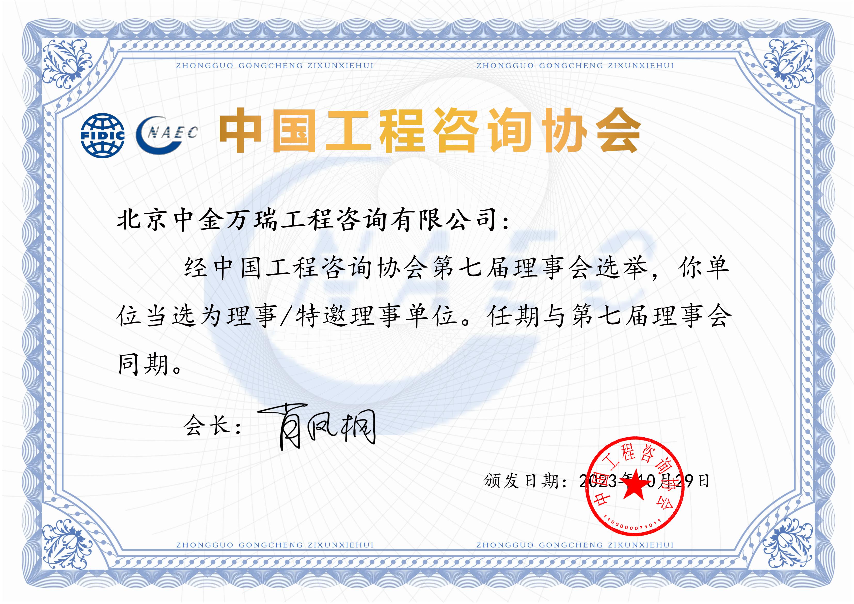 中國工程咨詢協(xié)會(huì)七屆理事會(huì)會(huì)員證書