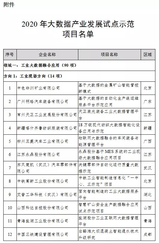 工業(yè)和信息化部辦公廳關(guān)于公布2020年大數(shù)據(jù)產(chǎn)業(yè)發(fā)展試點示范項目名單的通知