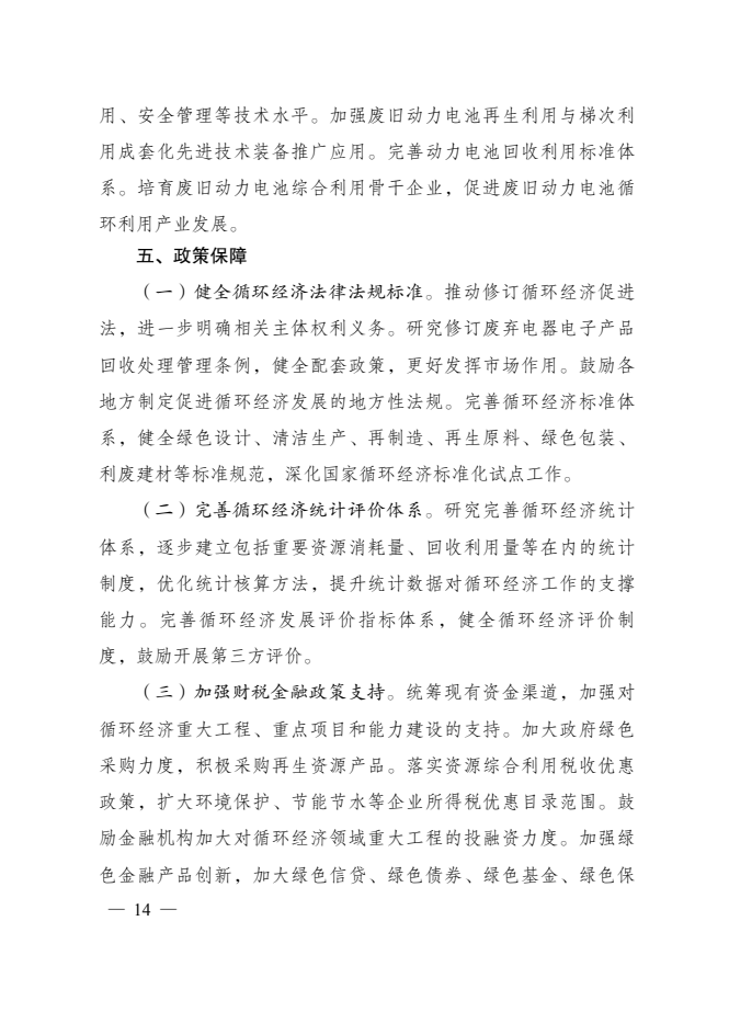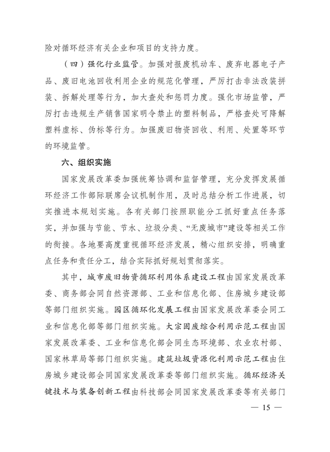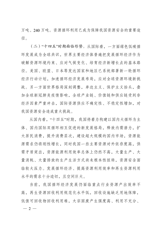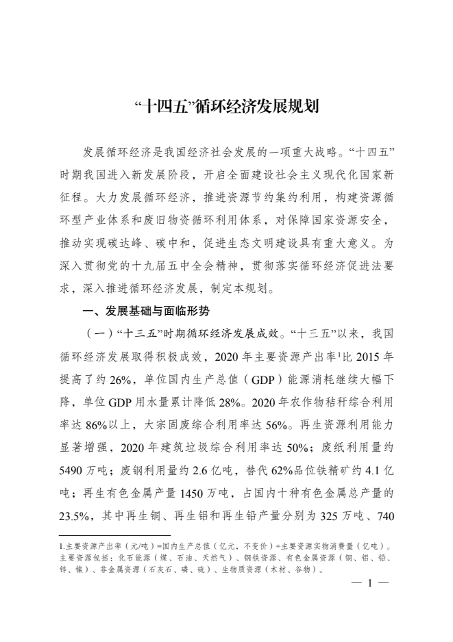 “十四五”循環(huán)經(jīng)濟(jì)發(fā)展規(guī)劃的通知