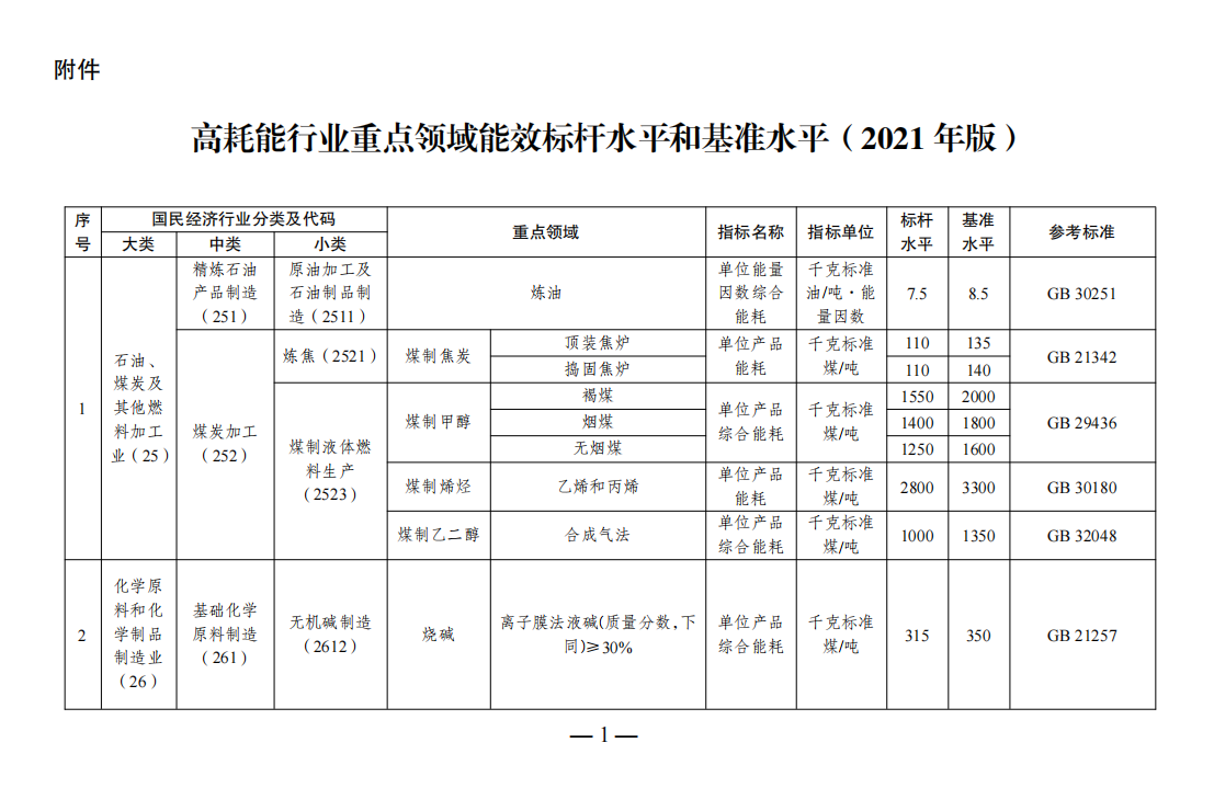 領(lǐng)域能效標(biāo)桿水平和基準(zhǔn)水平(2021年版)》的通知