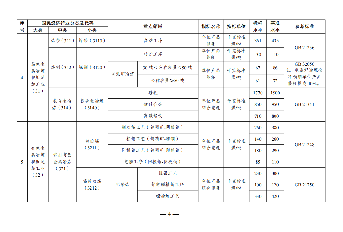 各省、自治區(qū)、直轄市及計劃單列市、新疆生產(chǎn)建設(shè)兵團發(fā)展改革委、工業(yè)和信息化主管部門、生態(tài)環(huán)境廳(局)、市場監(jiān)管局(廳、委)、能源局:??實現(xiàn)碳達(dá)峰、碳中和,是黨中央、國務(wù)院作出的重大戰(zhàn)略決策,是推動實現(xiàn)高質(zhì)量發(fā)展的內(nèi)在要求。高耗能行業(yè)是國民經(jīng)濟的重要組成部分,其高耗能屬性主要由產(chǎn)品性質(zhì)和工藝特點決定,合理有序的項目建設(shè)實施,對健全產(chǎn)業(yè)體系、穩(wěn)定市場供給、促進經(jīng)濟增長具有重要支撐作用。為落實《關(guān)于強化能效約束推動重點領(lǐng)域節(jié)能降碳的若干意見》,指導(dǎo)各地科學(xué)有序做好高耗能行業(yè)節(jié)能降碳技術(shù)改造,有效遏制“兩高”項目盲目發(fā)展,經(jīng)商有關(guān)方面,現(xiàn)發(fā)布《高耗能行業(yè)重點領(lǐng)域能效標(biāo)桿水平和基準(zhǔn)水平(2021年版)》,并就有關(guān)事項通知如下。??一、突出標(biāo)準(zhǔn)引領(lǐng)作用??對標(biāo)國內(nèi)外生產(chǎn)企業(yè)先進能效水平,確定高耗能行業(yè)能效標(biāo)桿水平。參考國家現(xiàn)行單位產(chǎn)品能耗限額標(biāo)準(zhǔn)確定的準(zhǔn)入值和限定值,根據(jù)行業(yè)實際情況、發(fā)展預(yù)期、生產(chǎn)裝置整體能效水平等,統(tǒng)籌考慮如期實現(xiàn)碳達(dá)峰目標(biāo)、保持生產(chǎn)供給平穩(wěn)、便于企業(yè)操作實施等因素,科學(xué)劃定各行業(yè)能效基準(zhǔn)水平。重點領(lǐng)域范圍和標(biāo)桿水平、基準(zhǔn)水平視行業(yè)發(fā)展和能耗限額標(biāo)準(zhǔn)制修訂情況進行補充完善和動態(tài)調(diào)整。??二、分類推動項目提效達(dá)標(biāo)??對擬建、在建項目,應(yīng)對照能效標(biāo)桿水平建設(shè)實施,推動能效水平應(yīng)提盡提,力爭全面達(dá)到標(biāo)桿水平。對能效低于本行業(yè)基準(zhǔn)水平的存量項目,合理設(shè)置政策實施過渡期,引導(dǎo)企業(yè)有序開展節(jié)能降碳技術(shù)改造,提高生產(chǎn)運行能效,堅決依法依規(guī)淘汰落后產(chǎn)能、落后工藝、落后產(chǎn)品。加強綠色低碳工藝技術(shù)裝備推廣應(yīng)用,促進形成強大國內(nèi)市場。??三、限期分批改造升級和淘汰??依據(jù)能效標(biāo)桿水平和基準(zhǔn)水平,限期分批實施改造升級和淘汰。對需開展技術(shù)改造的項目,各地要明確改造升級和淘汰時限(一般不超過3年)以及年度改造淘汰計劃,在規(guī)定時限內(nèi)將能效改造升級到基準(zhǔn)水平以上,力爭達(dá)到能效標(biāo)桿水平;對于不能按期改造完畢的項目進行淘汰。堅決遏制高耗能項目不合理用能,對于能效低于本行業(yè)基準(zhǔn)水平且未能按期改造升級的項目,限制用能。??四、完善相關(guān)配套支持政策??整合利用已有政策工具,通過階梯電價、國家工業(yè)專項節(jié)能監(jiān)察、環(huán)保監(jiān)督執(zhí)法等手段,加大節(jié)能降碳市場調(diào)節(jié)和督促落實力度。推動金融機構(gòu)在風(fēng)險可控、商業(yè)可持續(xù)的前提下,向節(jié)能減排效應(yīng)顯著的重點項目提供高質(zhì)量金融服務(wù),落實節(jié)能專用裝備、技術(shù)改造、資源綜合利用等稅收優(yōu)惠政策,加快企業(yè)改造升級步伐,提升行業(yè)整體能效水平。??上述規(guī)定自2022年1月1日起執(zhí)行。各地方要深刻認(rèn)識、高度重視嚴(yán)格能效約束推動高耗能行業(yè)節(jié)能降碳工作的重要性,充分立足本地發(fā)展實際,堅持系統(tǒng)觀念,尊重市場規(guī)律,細(xì)化工作要求,強化責(zé)任落實,穩(wěn)妥有序推動節(jié)能降碳技術(shù)改造,切實避免“一刀切”管理和“運動式”減碳,確保產(chǎn)業(yè)鏈供應(yīng)鏈穩(wěn)定和經(jīng)濟社會平穩(wěn)運行。??附件:高耗能行業(yè)重點領(lǐng)域能效標(biāo)桿水平和基準(zhǔn)水平(2021年版)國家發(fā)展改革委