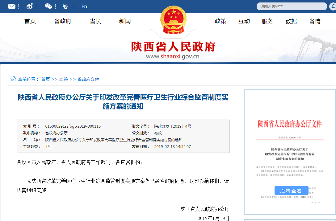 各設(shè)區(qū)市人民政府,省人民政府各工作部門、各直屬機構(gòu):《陜西省改革完善醫(yī)療衛(wèi)生行業(yè)綜合監(jiān)管制度實施方案》已經(jīng)省政府同意...