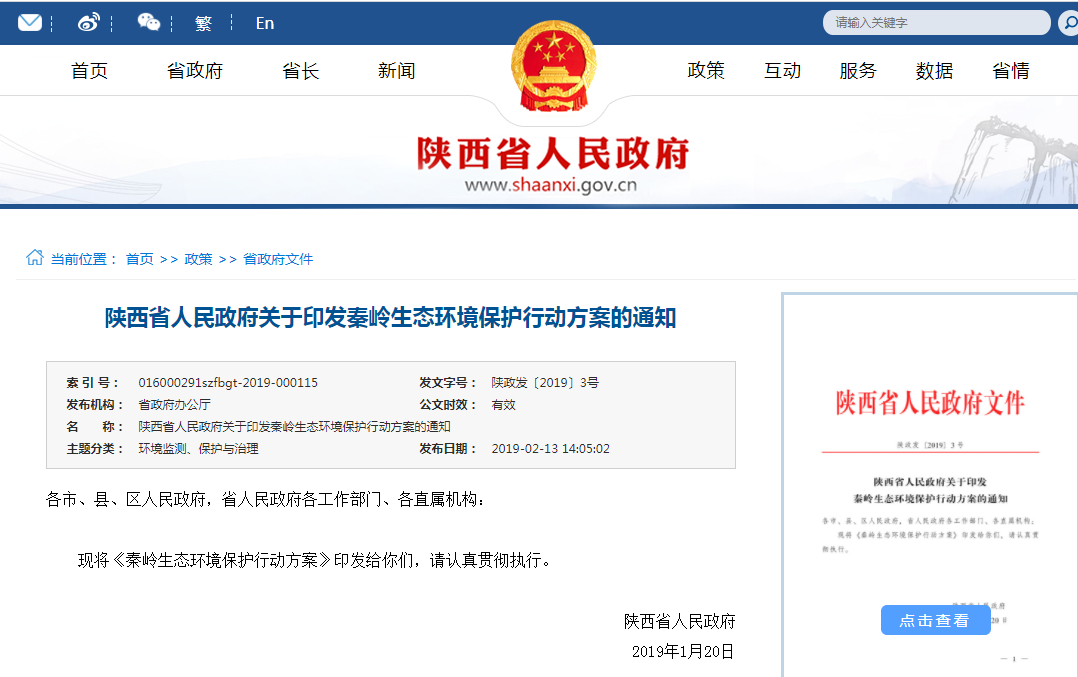 各市、縣、區(qū)人民政府,省人民政府各工作部門、各直屬機構(gòu):現(xiàn)將《秦嶺生態(tài)環(huán)境保護行動方案》印發(fā)給你們,請認(rèn)真貫徹執(zhí)行。...