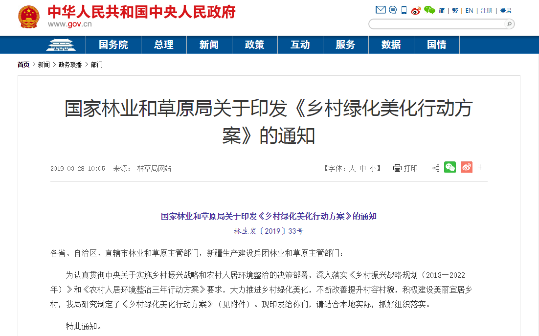 國(guó)家林業(yè)和草原局關(guān)于印發(fā)《鄉(xiāng)村綠化美化行動(dòng)方案》的通知林生發(fā)〔2019〕33號(hào)各省、自治區(qū)、直轄市林業(yè)和草原主管部門(mén),新疆...
